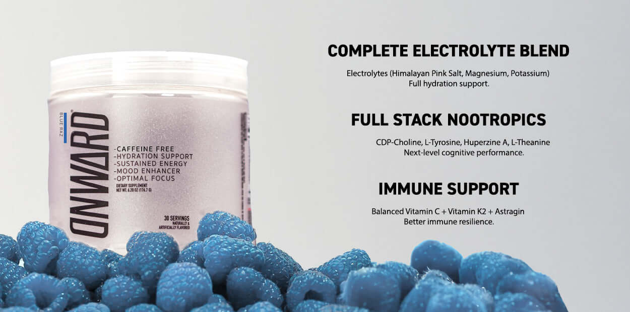 Unlike typical energy drinks, hydration powders, or nootropic supplements, Onward 2.0 is an all-in-one formula that delivers: